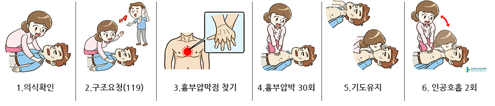 갑자기 심장과 폐의 기능이 멈췄을때 인위적으로 호흡과 혈액 순환을 도와 몸 속의 산소를 유지시켜 뇌손상 및 사망을 예방하고 환자의 예후를 긍정적으로 돕기 위한 응급처치 입니다.