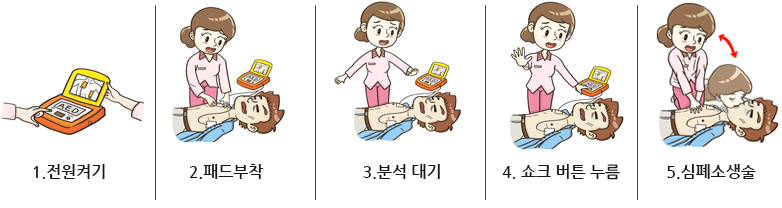 - 심폐소생술과 자동제세동기 사용방법은 다음와 같다.